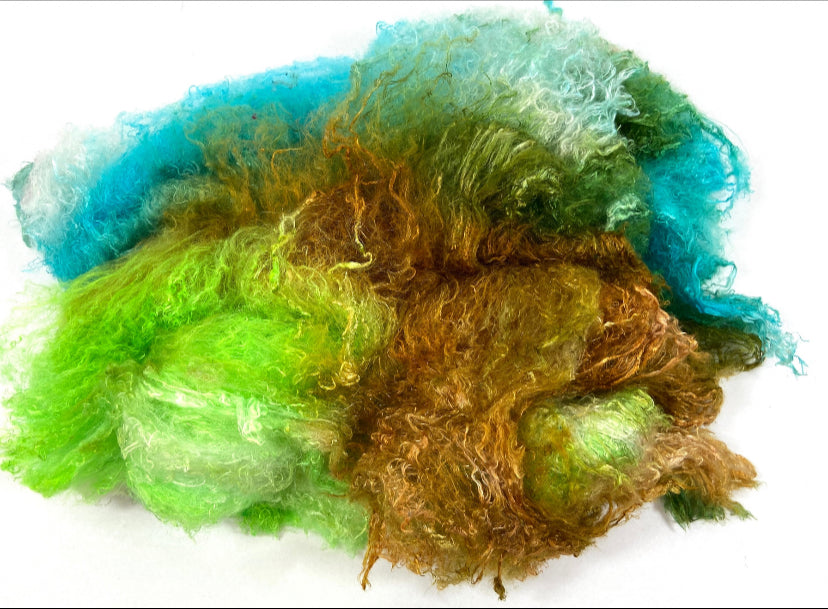 What is a silk lap?? When silk cocoons are carded, the shorter, clumpier fibers are left behind on the carding machine drum. The fibers build up and then they are removed in big sheets (each sheet is one “lap” around the drum).