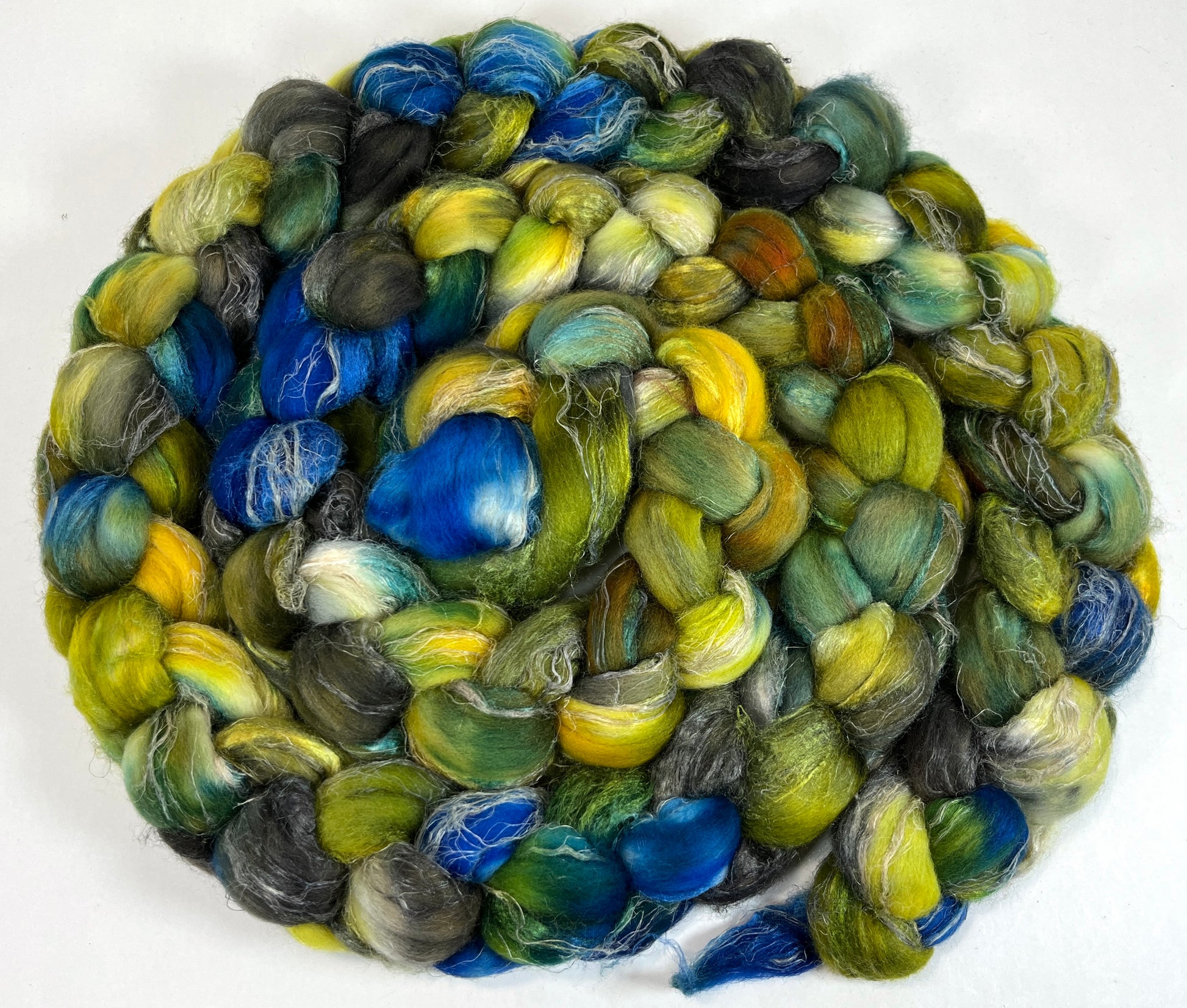 8.3 oz. 50/25/25 Merino/silk/flax combed top.