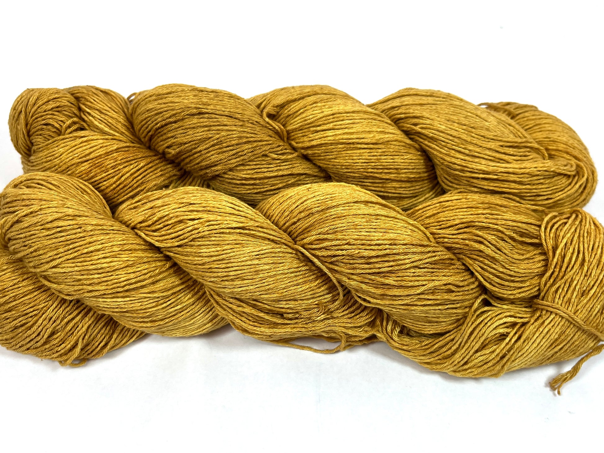 Mulberry Silk Yarn, Yellow Ochre, 437 yds/3.5 oz, silk noil yarn, OOAK
